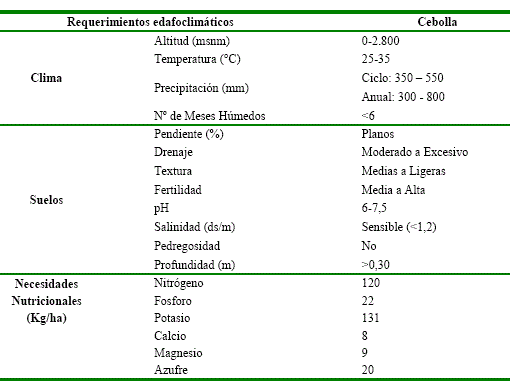La cebolla tiene un sistema radicular poco riguroso que limita bastante la absorción de nutrientes en pisos pobres.